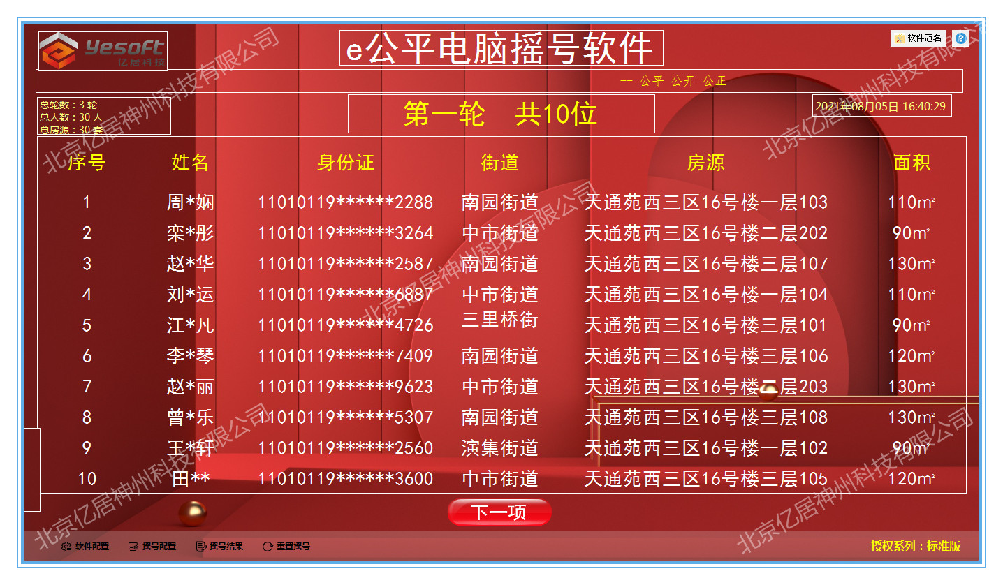 e公允電腦搖號軟件撐持自界說搖號計劃、搖號背景、音樂、快速鍵等計劃設置。撐持數據批量導入和手動錄入,數據核驗消重等數據設置。撐持搖號體例能夠分批搖號、搖挨次號、一一搖號等各類體例設置。撐持搖號進程中數據隨機婚配,公允公道,搖號進程停止追加、拋卻、取消、補缺等操縱設置。撐持搖號成果打印、查問、導出pdf等電子文檔,便利存檔。軟件界面功效清楚了然,操縱起來簡略易用。別的咱們供給軟件定制,能夠按照客戶的需要來針對性定制開辟軟件。